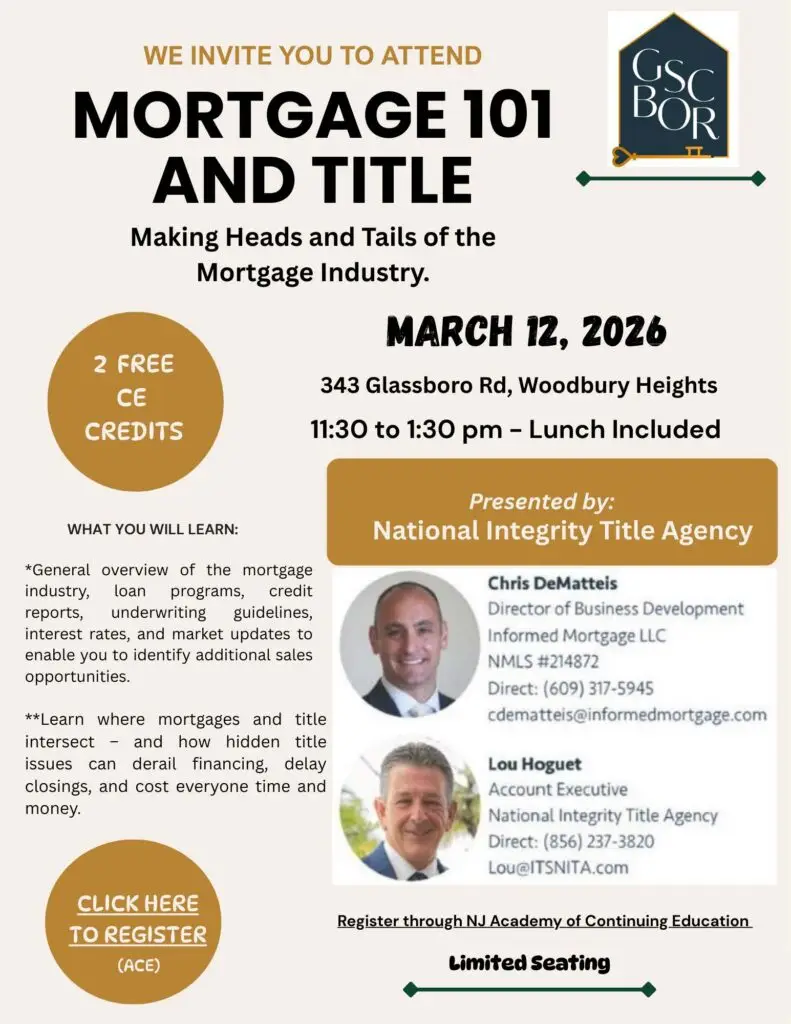 You are invited to our upcoming “Falling into Ownership” event! November 12, 2025 from 5:00-9:00 pm Maria Station Cafe – 700 Monmouth St., Gloucester City, NJ 08030 Food will be included! This is a fantastic opportunity to network with fellow realtors while enhancing your knowledge and skills. Plus, registering as a member for just $49 […]